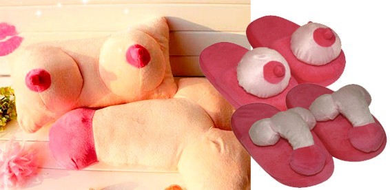 Вариант 3 Тапочки плюшевые "женская грудь"