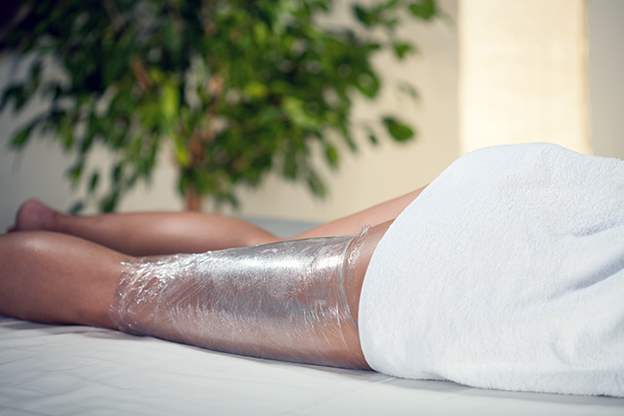 Холодное или горячее обертывание выполняется на базе профессиональной линии для коррекции фигуры Aravia Organic. |