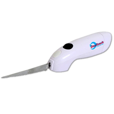 Этот электронож легко разрежет продукты из морозильной камеры, твердые овощи, поможет разделать мясо и нарезать хлеб. Удобен, снабжен кнопками включения и выброса лезвий. В комплекте: 2 самозатачивающихся лезвия – с мелкими зубцами и с крупными, кольцо для подвешивания.