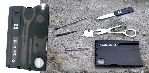 Преимущества походного набора инструментов в виде пластиковой карты на лицо.