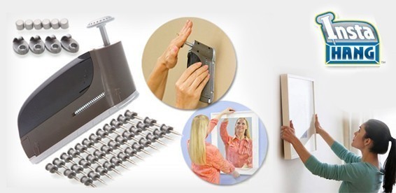 Купить InstaHang — это новейшее приспособление, которое заменит вам молоток, гвозди, провода и крючки, что позволит вам сэкономить время и деньги. InstaHang — это прибор, который проделывает отверстия в стене специальными гвоздиками, чтобы можно было повесить картину, одежду и т.л. Благодаря разработанному модулю, который надежно крепит штепселя,