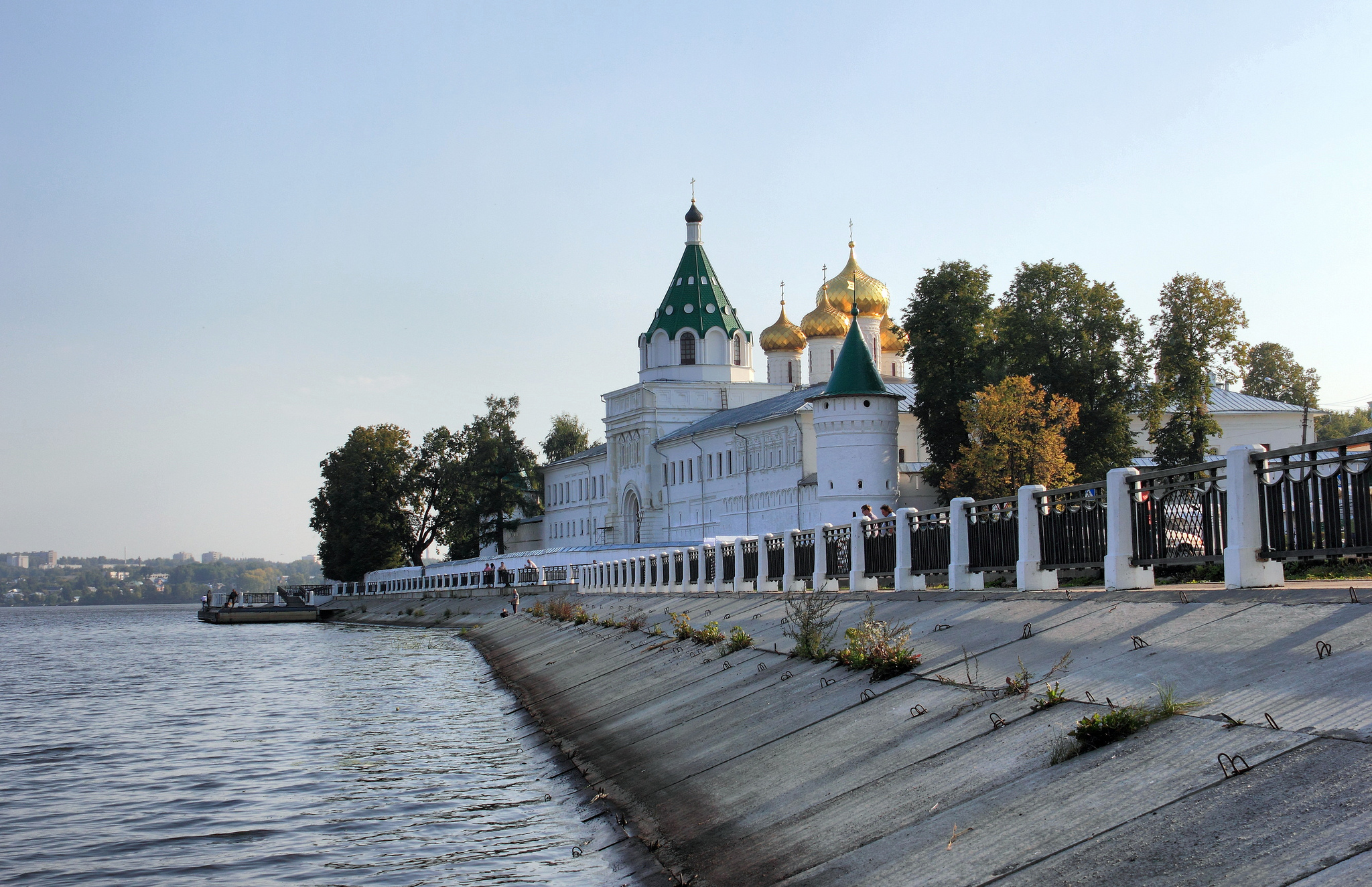 Знакомство с Ипатьевским монастырём – великолепным творением русских зодчих и иконописцев, колыбелью царской династии Романовых. Монастырь возник на стрелке рек Волги и Костромы. Он служил как бы ключом к городу. По легенде, основан татарским мурзой Четом. По дороге в Москву из Золотой Орды в 1330 г. Чет заболел и на месте будущего монастыря увидел во сне Богоматерь с апостолом Филиппом и святым мучеником Ипатием Гангрским. Видение обещало исцеление. Чет выздоровел, добрался до Москвы, принял крещение (он является родоначальником Годуновых) и основал монастырь. Затем монастырь нашел себе покровителя в лице царской династии Романовых. Мать первого царя Михаила владела богатой Костромской вотчиной и в начале 1613 г. жила с сыном в Ипатьевском монастыре, куда явилось посольство Земского Собора, чтобы в марте 1613 г. объявить об избрании Михаила на царский престол. Именно к Ипатьевскому монастырю пытались прорваться поляки, стремясь захватить молодого Романова. Иван Сусанин спас новую династию, заманив поляков в чащу.