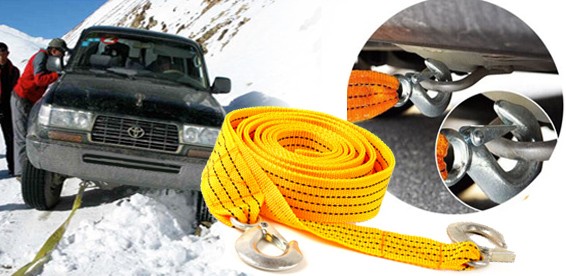 Трос буксировочный изготовлен из высокопрочной синтетической ткани и снабжен крюками с пружинными фиксаторами. Максимально допустимая масса буксируемого автомобиля - 5 тонн.