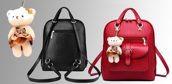 Женский рюкзак из искусственной кожи высокого качества, с имитацией плетения. Имеет внутренний и внешний карманы,застегивается на молнию. Вмещает А4. Может быть в виде рюкзака и сумки (ручки - трансформер). Украшен съемным мишкой. Размеры: длина - 27 см, ширина - 12 см, высота - 31 см. Производство - Китай.