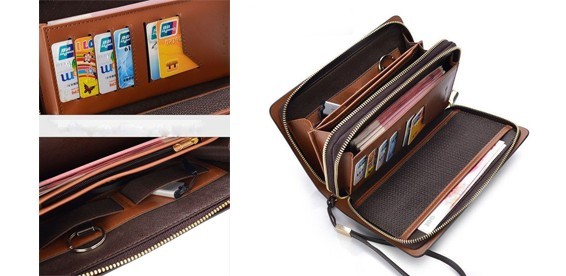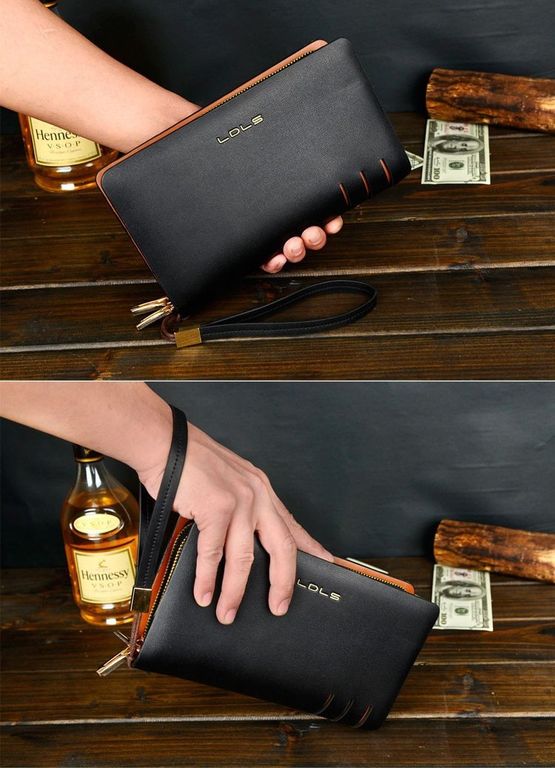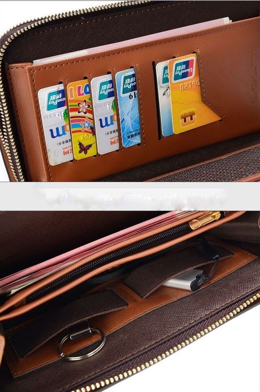 Мужской клатч-портмоне из искусственной кожи со съемной ручкой-петлей. Имеет два больших отделения на молнии для карточек, денег, фото, ключей и разных мелочей. Размеры: 22 cм*14 см. Производство - Китай.