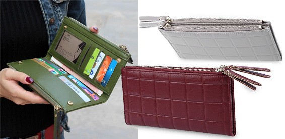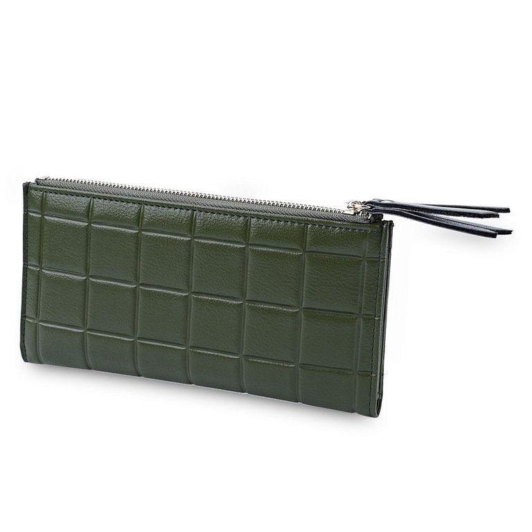 Женский мягкий кошелек из искусственной кожи с эффектом прострочки. Имеет отделения для карточек и фото, два кармана на молнии. Размеры: 19,5 см*10 см. Производство - Китай.