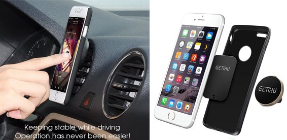 Всё, что вам нужно – вставить устройство «лепестками» в распор вентиляционной решетки и наклеить магнит на заднюю крышку телефона. Наклеить магнит так же можно под крышку телефона или под чехол, магнит очень сильный, а потому без проблем удержит ваш смартфон.