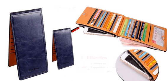 Тонкий кошелек-портмоне из искусственной кожи унисекс. Имеет два больших отделения, одно из которых на молнии, 17 отделений для карточек, закрывается на кнопку. Размеры: 19 cм*10 см. Производство - Китай.