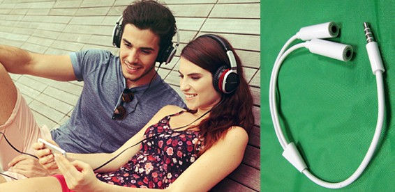 Все, что вам нужно — это вторая пара наушников и настоящий Apple-style Y-разветвитель.