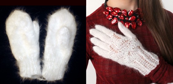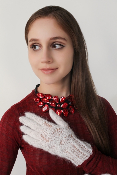 Изящные ажурные перчатки из тоньчайшего козьго пуха. Ручная работа.