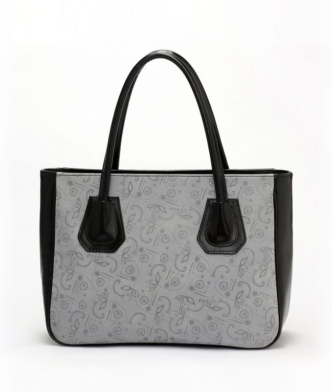 Женская серо-черная сумка из натуральной кожи высокого качества. Застегивается на молнию. Внутри имеет два отделения, между которыми карман на молнии, а также карманы для телефона и документов. Подкладка с водоотталкивающей пропиткой. Снаружи, на задней стороне, отделение на молнии. В комплекте регулируемый плечевой ремень. Размеры: длина - 31,5 см, ширина - 12 см, высота - 23,5 см, с ручками - 39 см. Производство - Россия.