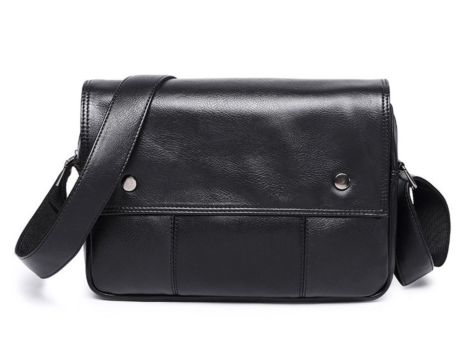 Мужская сумка кросс-боди из искусственной кожи черного цвета. Застегивается на молнию и крышку-клапан на магнитах. Имеет регулируемый плечевой ремень, внутренние карманы и внешний накладной карман. Размеры: длина - 30 см, ширина - 9 см, высота - 16 см. Производство - Китай.