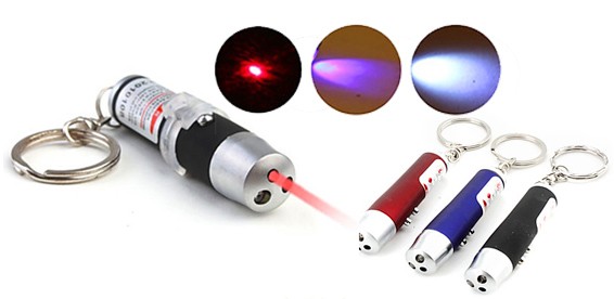Количество режимов работы: 3 (красный лазер 5 mW / светодиодный LEDфонарик, ультрафиолетовый UV фонарик)