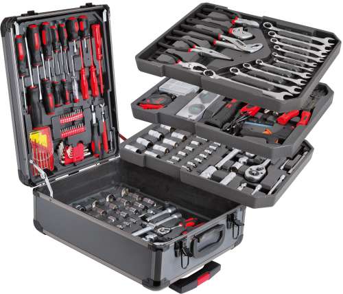 Набор инструментов от Германского производителя – это незаменимый помощник в хозяйстве: в квартире, частном доме, в гараже и на даче. Набор уложен в практичный чемодан, оснащенный раздвижной ручкой и колесиками, что способствует его легкой транспортировке и компактному хранению. Имеется четыре уровня инструментов, в которых размещено 187 предметов. Каждый отсек сзади оснащен вырезом, что дает возможность подвесить инструмент на стену. Надежность, стойкость и долговечность ключам обеспечивает сплав легированной стали, из которого они изготовлены. Такой многофункциональный набор позволят сделать буквально все: починить велосипед, отремонтировать мебель, починить любимый автомобиль, и произвести некоторые ремонтные работы.
