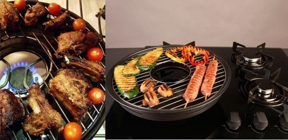 Приготовление происходит за счет конвекции горячего воздуха под крышкой гриля. Гриль необходимо установить на конфорку,диаметр конфорки должен быть меньше диаметра отверстия в нижней части сковороды. Зажгите огонь, сделав минимально средний уровень пламени. На решетку гриля выложите ваш продукт.накройте крышкой и все. Продукт готовиться без добавления масла. Продукт не нужно переворачивать. Отсутствует прямой контакт продукта с нагреваемой поверхностью что облегчает уход за сковородой (продукты не пригорают).