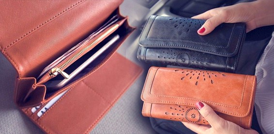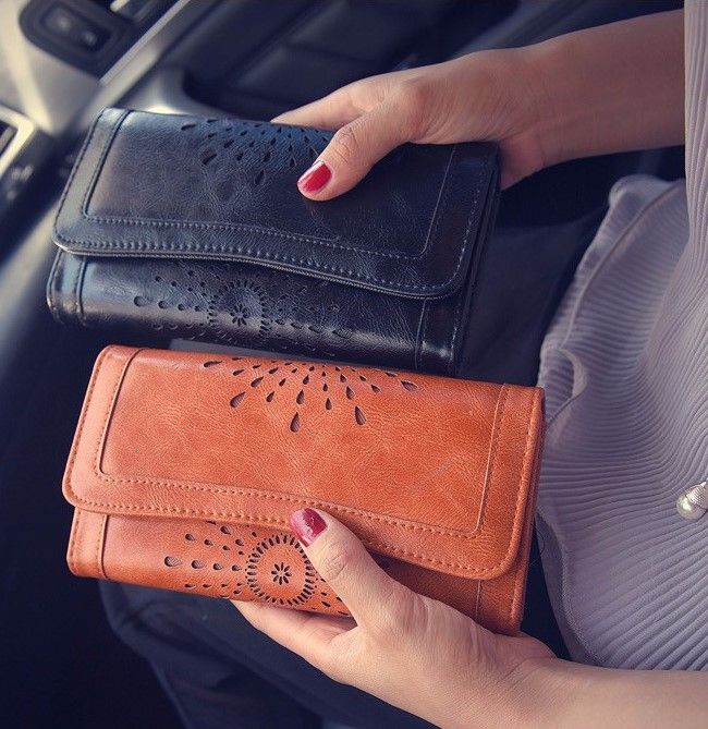 Женский кошелек из искусственной кожи с перфорированным узором, закрывается на магнитную кнопку. Имеет отделения для карточек и денег, карман для мелочи. Размеры: 19 см*10см. Производство - Китай.