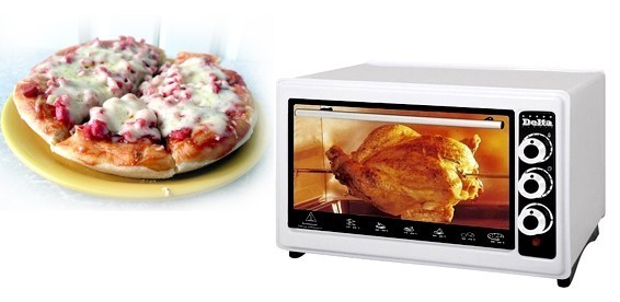 Мини-печь Delta D-024 оснащена верхним и нижним нагревательными элементами, таймером на 90 минут и световой индикацией включения. Поставляется в комплекте с аксессуарами — двумя противнями, решеткой и вертелом для гриля.