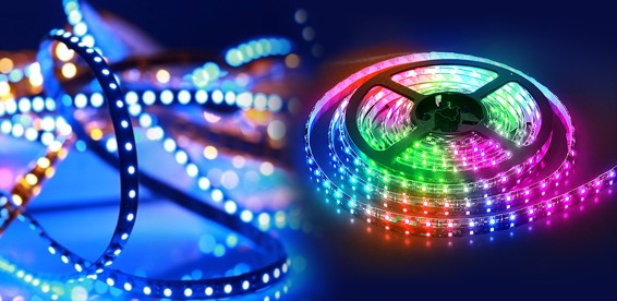 Светодиодная лента управляется при помощи RGB контроллера подключенного к ленте. Дистанционное управление цветом, вспышками и яркостью при помощи пульта Д/У.