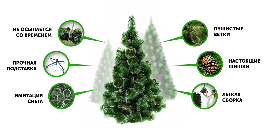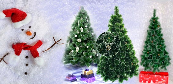 Пушистые искуственные ёлки + гирлянда на 100 ламп. |