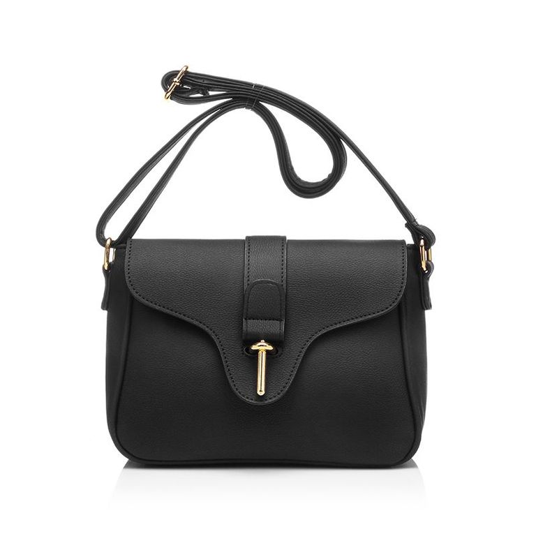 Женская небольшая сумка из искусственной кожи высокого качества. Застегивается на молнию и крышку-клапан с застежкой "кортик". Имеет внутренние и внешний задний карманы, регулируемый плечевой ремень. Размеры: длина - 20 см, ширина - 7,5 см, высота - 18 см. Производство - Китай.