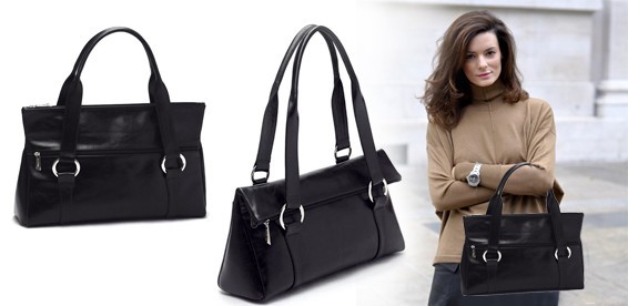 Женская черная сумка из натуральной кожи высокого качества. Имеет внутренние отделения и внешние вместительные карманы на молнии. В разложенном виде вмещает А4. Размеры: длина - 37 см, ширина - 12 см, высота - 20 см., с ручками - 45 см. Производство - Россия.