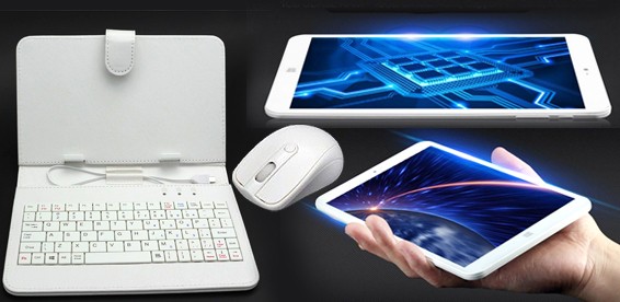 Комплектуется чехлом-клавиатурой с беспроводной мышкой