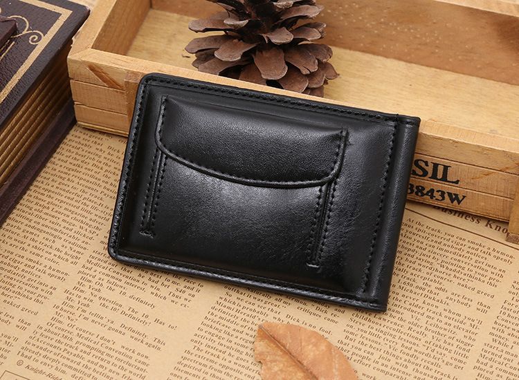 Мужской двойной кошелек из искусственной кожи. Имеет зажим для денег, карман для карточек и снаружи отделение на кнопке для мелочи. Размеры: 11,5 cм*7,5 см. Производство - Китай.