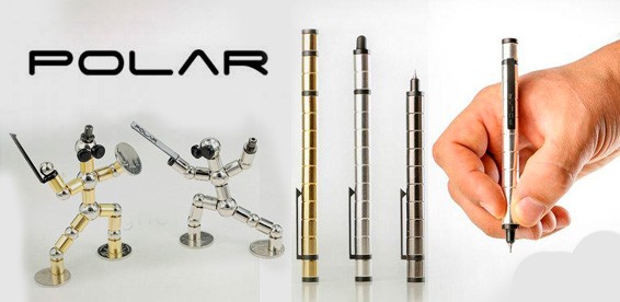 Polar pen – это 13 неодимовых магнитов, покрытых слоем золота в 24 карат. Дополнительные детали из стали с черной оцинковкой: зажим, 2 насадки, 2 заглушки. Но эргономичный дизайн – это не все достоинства гаджета канадского происхождения. Функциональные возможности ручки уникальны: письменная принадлежность, циркуль, указка для смартфона, игрушка (конструктор или магнитный вечный двигатель).