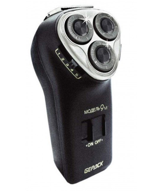 9М принадлежит к традиционной серии электробритв, выпускаемых Бердским электромеханическим заводом. Бритва имеет 3 плавающие роторные головки и подвижный бритвенный блок с возможностью регулировки. Мощнейший оборотистый движок позволяет делать бритье гладко и без раздражения кожи. Для рационального метода бритья зависимо от типа кожи есть 5 комфортных опций глубины плавания ножей. Ножики бритвы самозатачивающиеся. У бритвы есть триммер для подравнивания висков и усов.