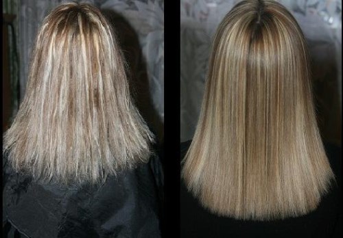 Кератиновое выпрямление и восстановление структуры волос. Жидкий синтезированный кератин проникает в пустоты волоса и заполняет их, сворачиваясь под воздействием температуры и превращаясь в защитный слой. Это придает волосам гладкость и блеск!