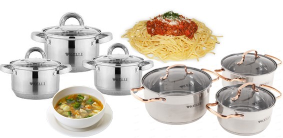 Набор кастрюль Kelli (7-ми слойное капсульное дно). Купон 390 руб. + доплата 1880 руб. вместо 9660 руб. (скидка 76%) Набор кастрюль Kelli (5-ти слойное капсульное дно). Купон 390 руб. + доплата 2000 руб. вместо 10850 руб. (скидка 78%) |