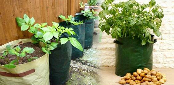 Отличный, необычный способ для выращивания картошки можно использовать на любой территории, даже при условии того, что места не так уж много. Нужно взять мешок, насыпать в него одно-два ведра земли и посадить в него 1-2 картошки, поставить на солнечное место и полить. Дальше – стоит подождать, когда клубень пойдет в рост и у него появятся всходы. А затем надо просто периодически подсыпать землю и поливать. И так до наполнения мешка землей. По мере роста столона (подземного побега), на нем образуются клубни по всей высоте мешка.