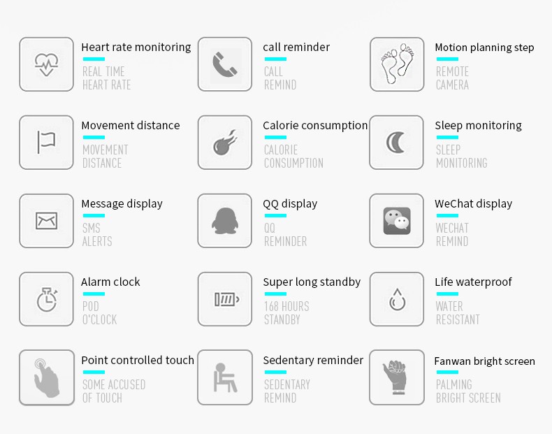 Фитнес-браслет влагозащищенный, сенсорный дисплей 0.6″ OLED, Bluetooth 4.0, Оповещение: звонок/СМС на экране, ёмкость 85 мАч время работы до 5 дней, вибросигнал, датчик сердечного ритма в режиме реального времени, время, шаг, расстояние, мониторинг калорий, анти-потерянный, напоминание, Android и IOS операционные системы, зарядка интерфейс, водонепроницаемый уровень:IP67, вес 55г.