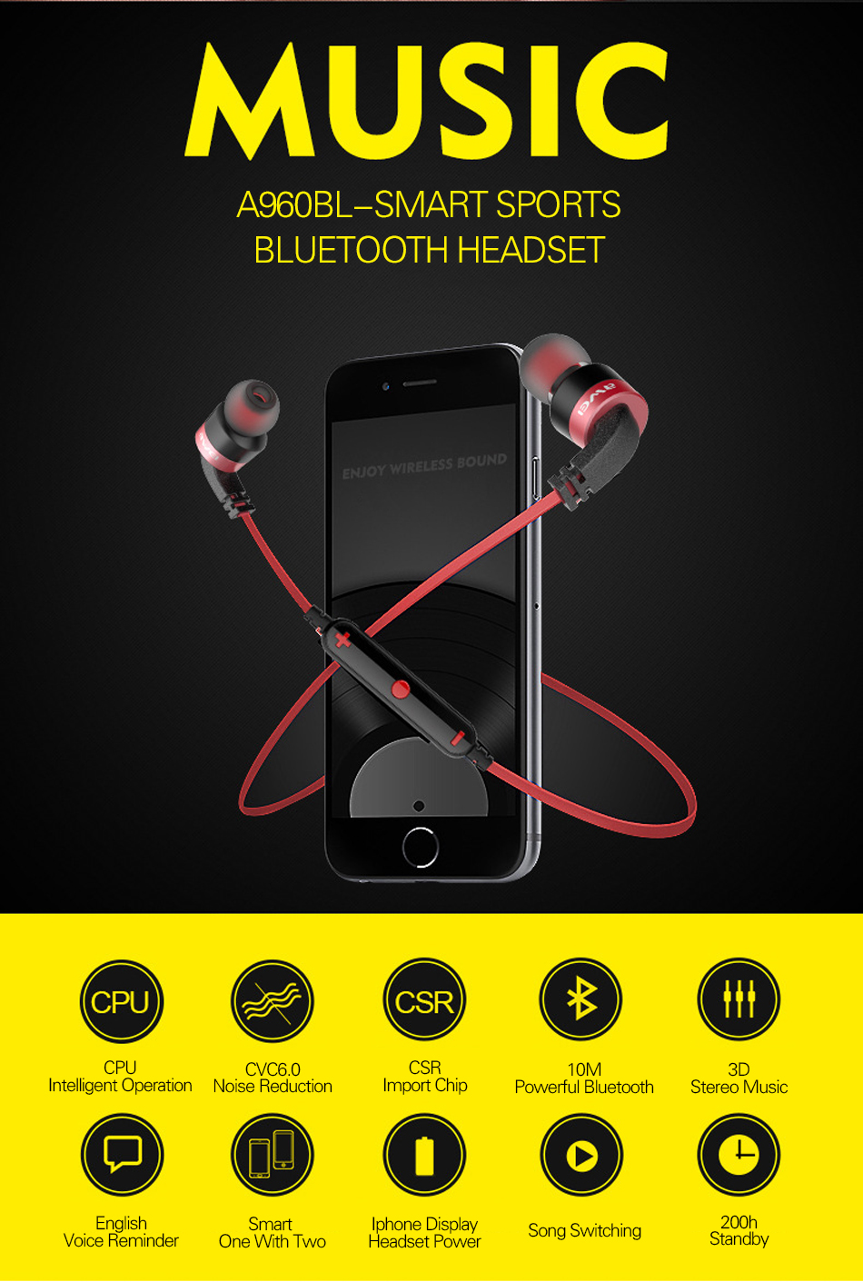 Комплект поставки: 1 х A960BL Bluetooth наушники, 1 х USB кабель для зарядки, 1 х двуязычное руководство пользователя, 2 х пара наушников, 1 x кабельный зажим, 1 х пара ушей