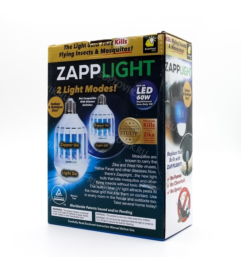 Компания Zapp создала уникальную диодную лампочку для экологичного избавления от комаров. Лампа с цоколем E27 работает в 3 режимах: