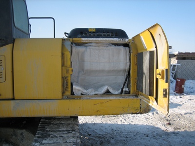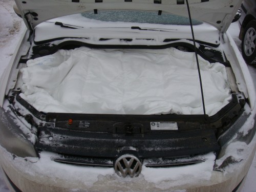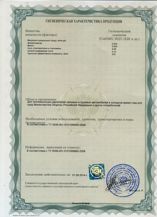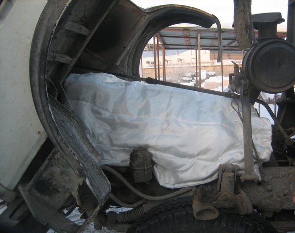 5. Утеплитель помещается в моторный отсек, где установлен воздухозаборник, пропускающий воздух с улицы в салон авто. В связи с этим в состав утеплителя непременно должны входить экологичные материалы. К тому же, требуется предотвратить попадание микрочастиц утеплителя в воздухозаборник, обезопасив таким образом легкие людей, находящихся в салоне. Поэтому наружная ткань должна быть плотной и без задиров.