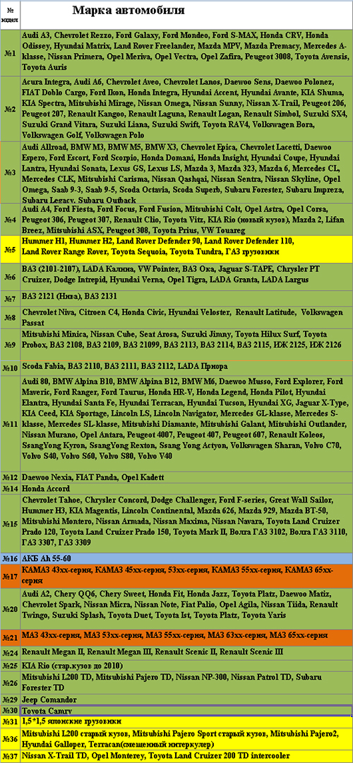 Чтобы прислать подходящее термоодеяло, нам нужно знать модель вашего автомобиля. Указывайте модель автомобиля и модель нужного термоодеяла (цифра рядом с маркой авто). Учитывайте, что цена различается для разных типов автомобиля. Разные цены обозначены цветом. Синим цветом обозначено термоодеяло для АКБ.