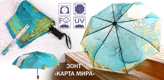 Зонт "Карта Мира"- это оригинальная альтернатива скучным однотонным аксессуарам, которые можно встретить практически у каждого прохожего. Выделяйтесь от большинства – купите прикольный зонт с картой мира, и пусть все увидят, что даже дождь может принести положительные эмоции! Аксессуар может похвастаться прочной конструкцией, большой широкой шляпкой, где легко поместятся двое. И кстати, зонт универсален во всех отношениях – его можно подарить и девушке, и парню и бабушке и дедушке. Главное, что этот аксессуар надежно укрывает от дождя и поднимает настроение!