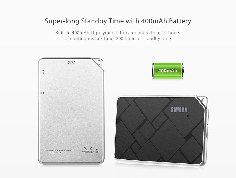 Встроенный 400 мАч литий-полимерный аккумулятор, не более 3 часов непрерывного разговора, 200 часов в режиме ожидания