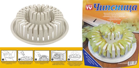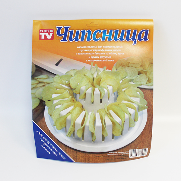 Чипсница «Chip Maker» - это находка для всех любителей чипсов, ведь теперь их можно готовить в микроволновой печи! С помощью набора Вы приготовите чипсы не только из картофеля, но и из тыквы, батата (сладкого картофеля), морковки, яблок.