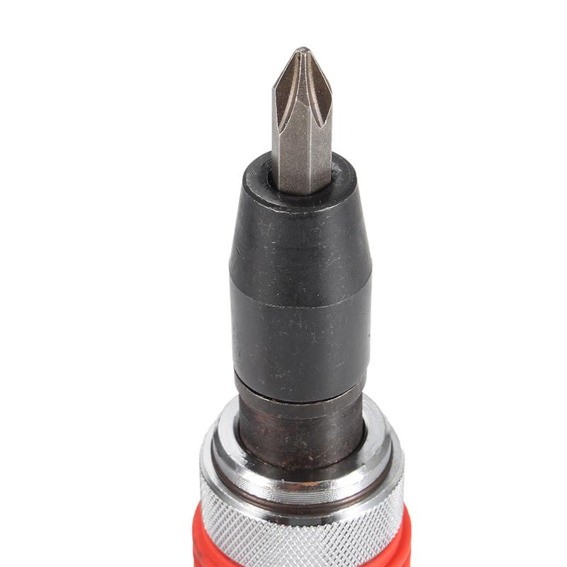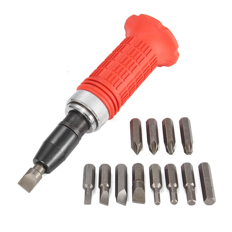 Ударно-поворотная отвертка от компании оснащена набором из 12 насадок, которые позволяют сразу же приступить к делу, не откладывая времени. Благодаря особенностям механизма происходит задействование минимальных усилий: чтобы закрутить или открутить болт или шуруп, не нужно поворачивать всю отвертку, а только ее ручку. Также есть возможность задавать направление движения инструмента, не производя много манипуляций.
