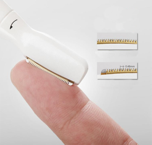 Электрический эпилятор, который вы видите на фото, способен удалять волоски быстро, практически безболезненно, и эффект «держится» от 1 до 3 недель – в зависимости от ваших индивидуальных особенностей. Другими словами, даже если нежелательная растительность у вас довольно бурная, достаточно будет одной-единственной процедуры в неделю, чтобы поддерживать эстетически законченный результат. Можно ходить в открытых майках без рукавов, коротеньких шортиках, кататься на велосипеде и роликах, не рискуя выглядеть нелепо – разве стоимость эпилятора не «покрывает» все эти результаты? Чтобы применять такой эпилятор, не нужно ждать отрастания волос до определённой длины, как того требуют другие модели – вы просто освежаете свой результат, и забываете о том, как вообще выглядят волосы на теле. Волосяной покров из-за такой массированной атаки теряет свою густоту и силу, истощается, а потом постепенно сходит на нет. Электрические эпиляторы также предпочтительнее, так как скорость вращения бреющей поверхности так высока, что сводит дискомфорт во время операции буквально к нулю. Не лишайте себя удовольствия летних прогулок в открытой одежде и купания в бикини – весь пляж будет в восторге от вашей кожи! Заказать эпилятор – значит провести отличные каникулы или отпуск.