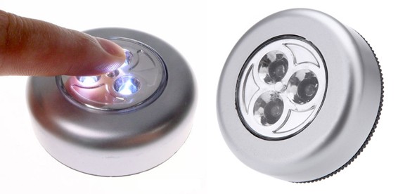Никаких проводов, которые надо тянуть и укреплять по плинтусам. Никаких мастеров, сложных креплений, сверления стен и вворачивания лампочек – всё гораздо проще! Просто-напросто снять с обратной стороны светильника Стик-Н-Клик защитную плёнку-прокладку и прижать клейкой поверхностью к тому месту, где вы желаете расположить источник света. Вот и всё! Чтобы включить led-светильник, достаточно нажать на кнопочку в центре – и через мгновение всё вокруг озарится приятным, мягким светом. Отличный подарок любой семье, не правда ли? Чем не возможность своими руками оборудовать подсветку в гостиной и на кухне, красиво оформить витрину, а также пользоваться одним из светильников, входящих в комплект, как обыкновенным фонариком.
