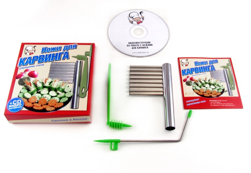 Ножи для карвинга с CD диском - незаменимый атрибут вашей кухни. Набор позволяет придать обычным блюдам праздничный вид. В подарочной красочной коробке с видео презентацией на диске. Окружите себя приятными мелочами, пусть они радуют взгляд и дарят гармонию.