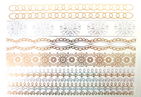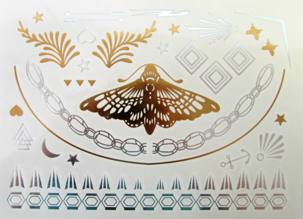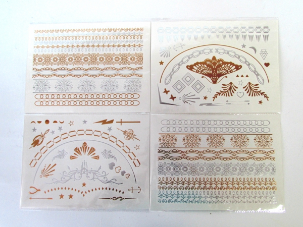 В комплект входит 4 листа А5 с металлическими татуировками.