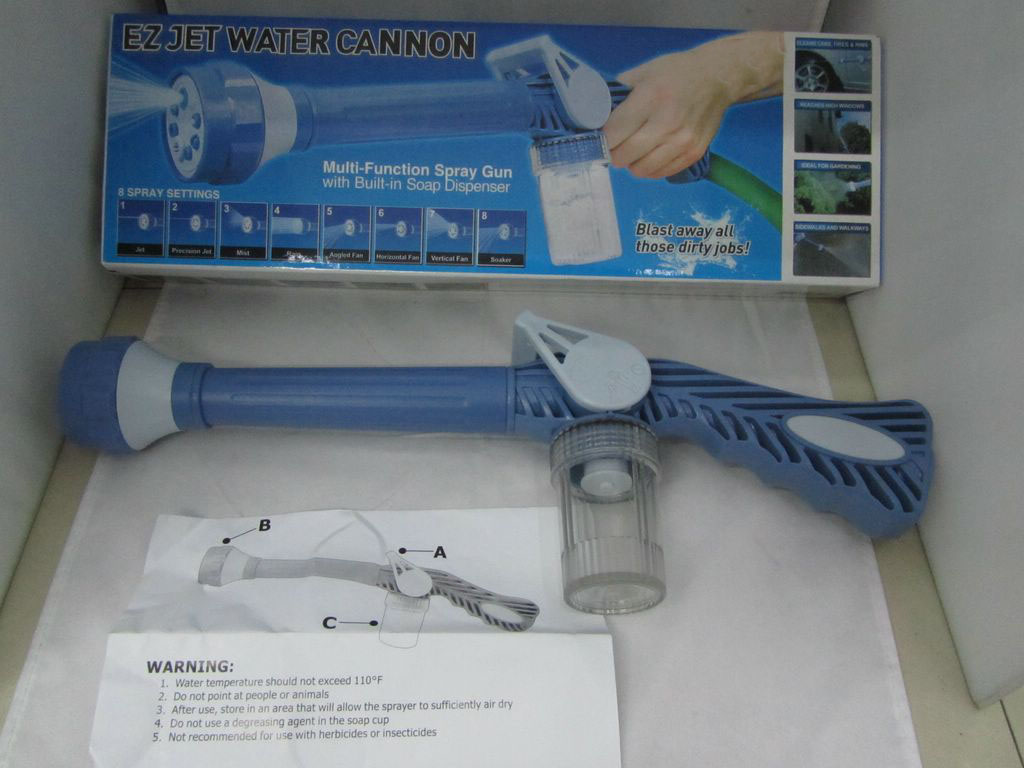 EZ Jet водомет идеально подходит для полива сада, огорода, мытья автомобиля, дома, крыши, лестниц, тротуарной плитки, забора, а также надувных лодок и бассейнов. EZ JET водомет подходит к любому садовому шлангу. Оснащен 8-ю режимами, плюс устройство для опрыскивающих веществ, для жидкого моющего средства.