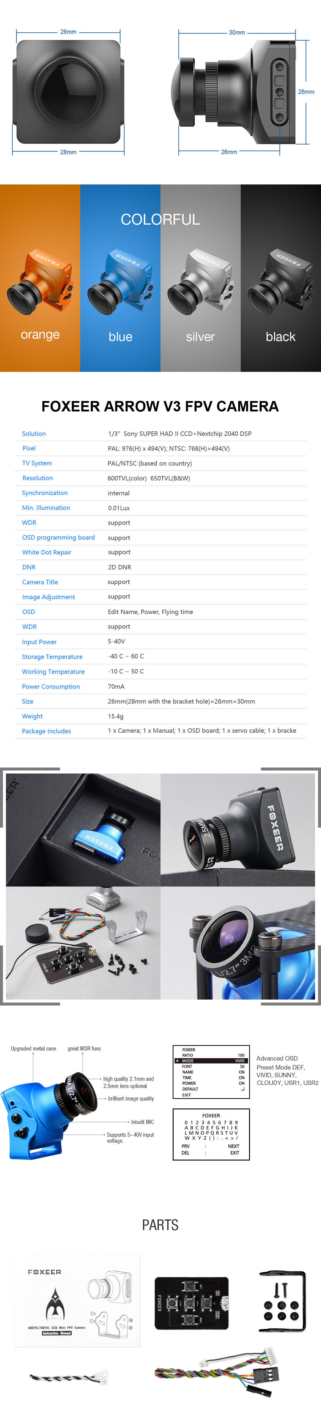 Разрешение 650TVL (ч/б), 600TVL (цвет)