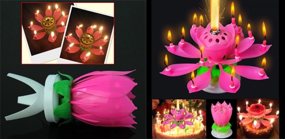 При помощи специальной подставки, на которой закреплен бутон цветка, он устанавливается в центр торта. Используя специальную палочку (входит в комплект), зажгите свечу-бенгальский огонь. Пока горит бенгальская свеча - бутон цветка раскрывает свои лепестки - на каждом из которых зажигается маленькая свечка - цветок начинает играть музыку "с днем рожденья" (при этом цветок не крутится).