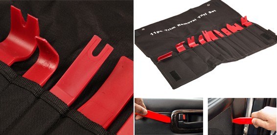 11 предметов предназначены для снятия пластиковых клипс, молдингов, декоративных накладок, а также элементов облицовки автомобиля.