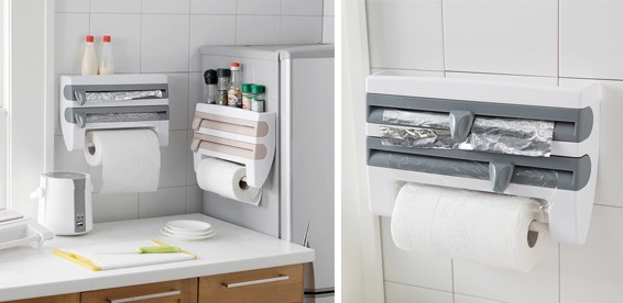 Рулоны с бумажным полотенцем, фольгой и полиэтиленовой пленкой разрезаются с помощью режущих планок.